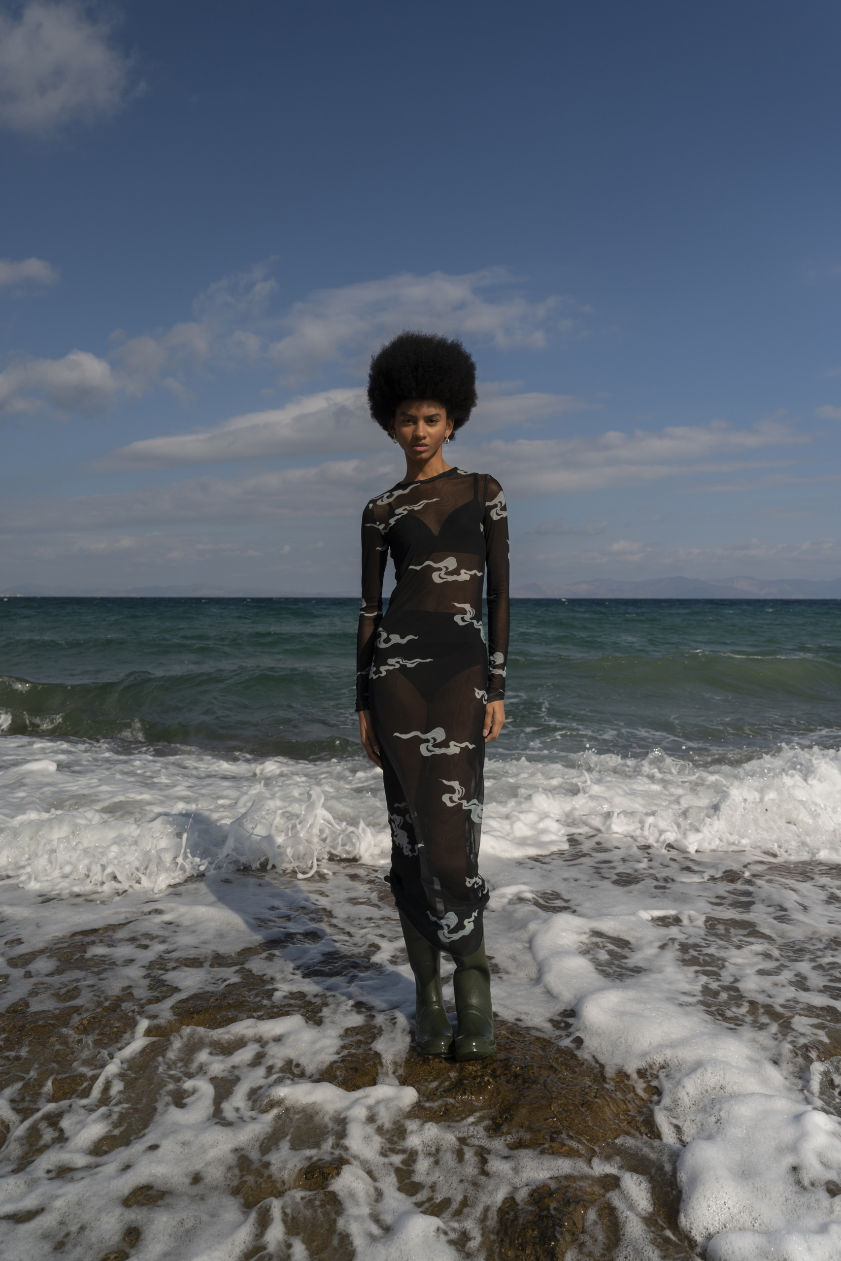 Due to its elasticity, it hugs the body but does not restrict freedom of movement.